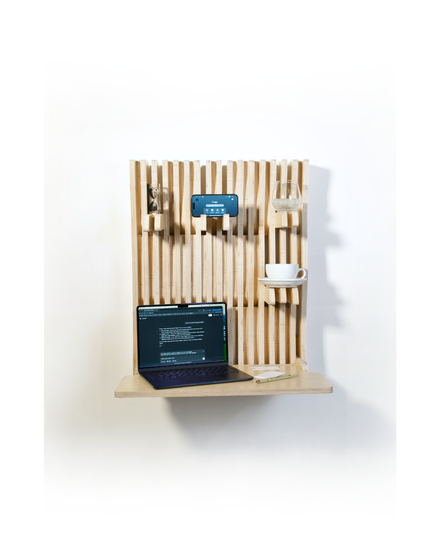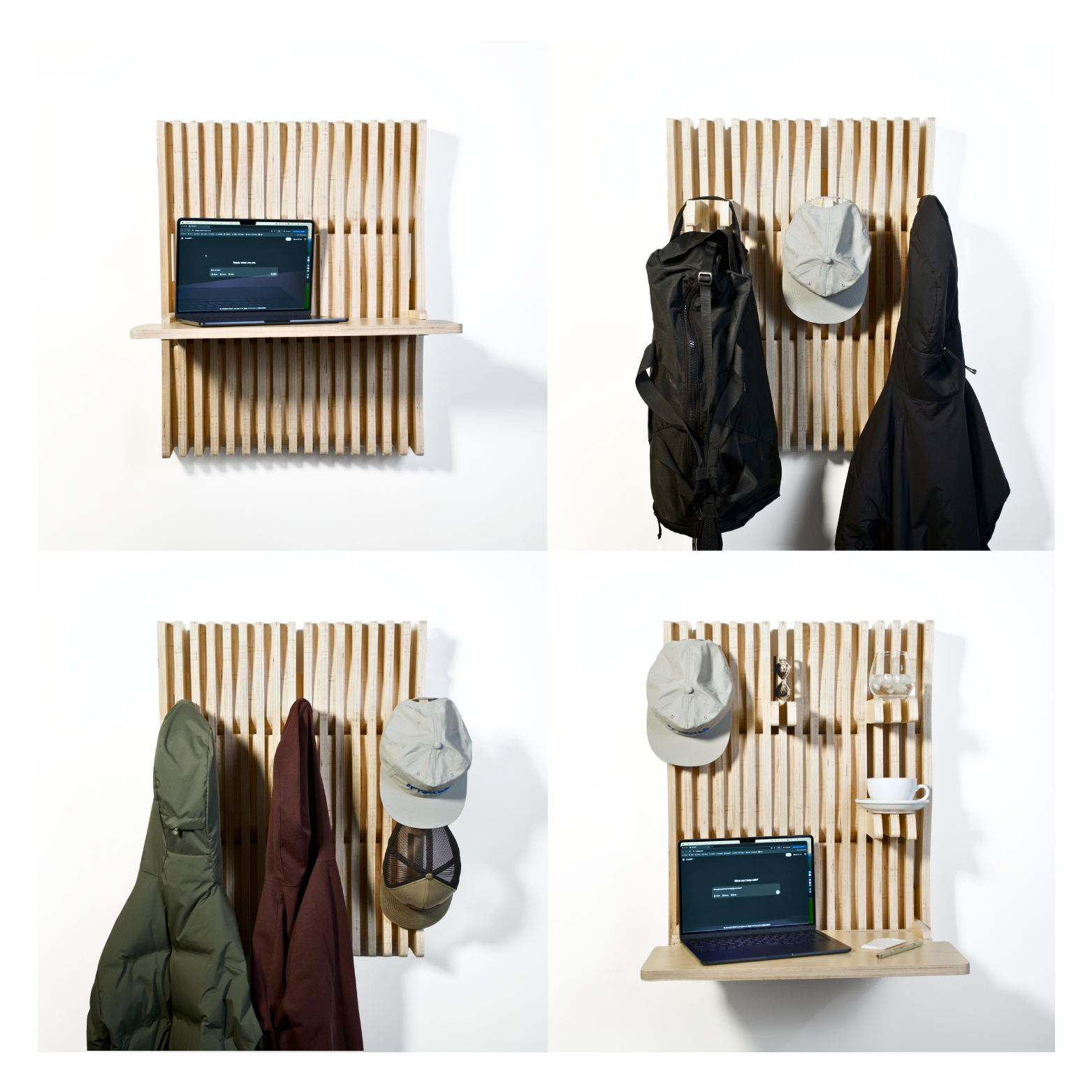 Crafted from premium Baltic birch, FlēxDesk is a heavyweight, wall-mounted essential designed to do more with less. Whether you're working from home or walking through the door, it effortlessly transforms between a minimalist workspace and a clean, sculptural coat rack — no bulk, no clutter.